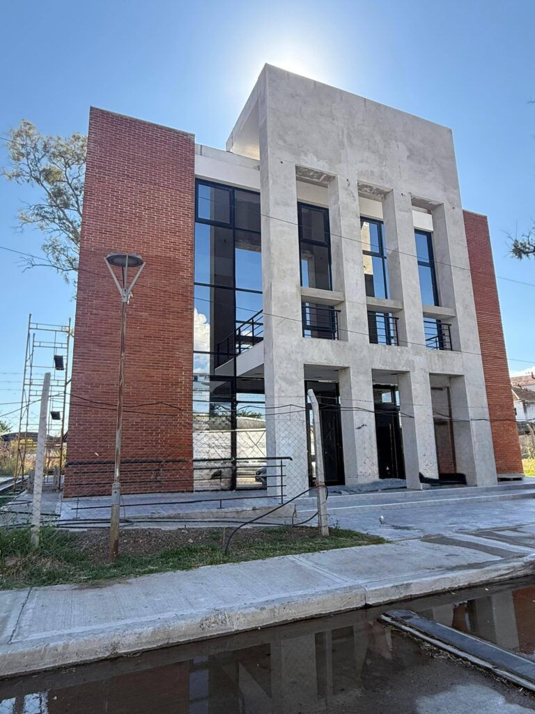 El predio de la nueva Casa de la Provincia a inaugurarse próximamente, con la Escuela de Educación Técnica Javier Tapié ubicada atrás.