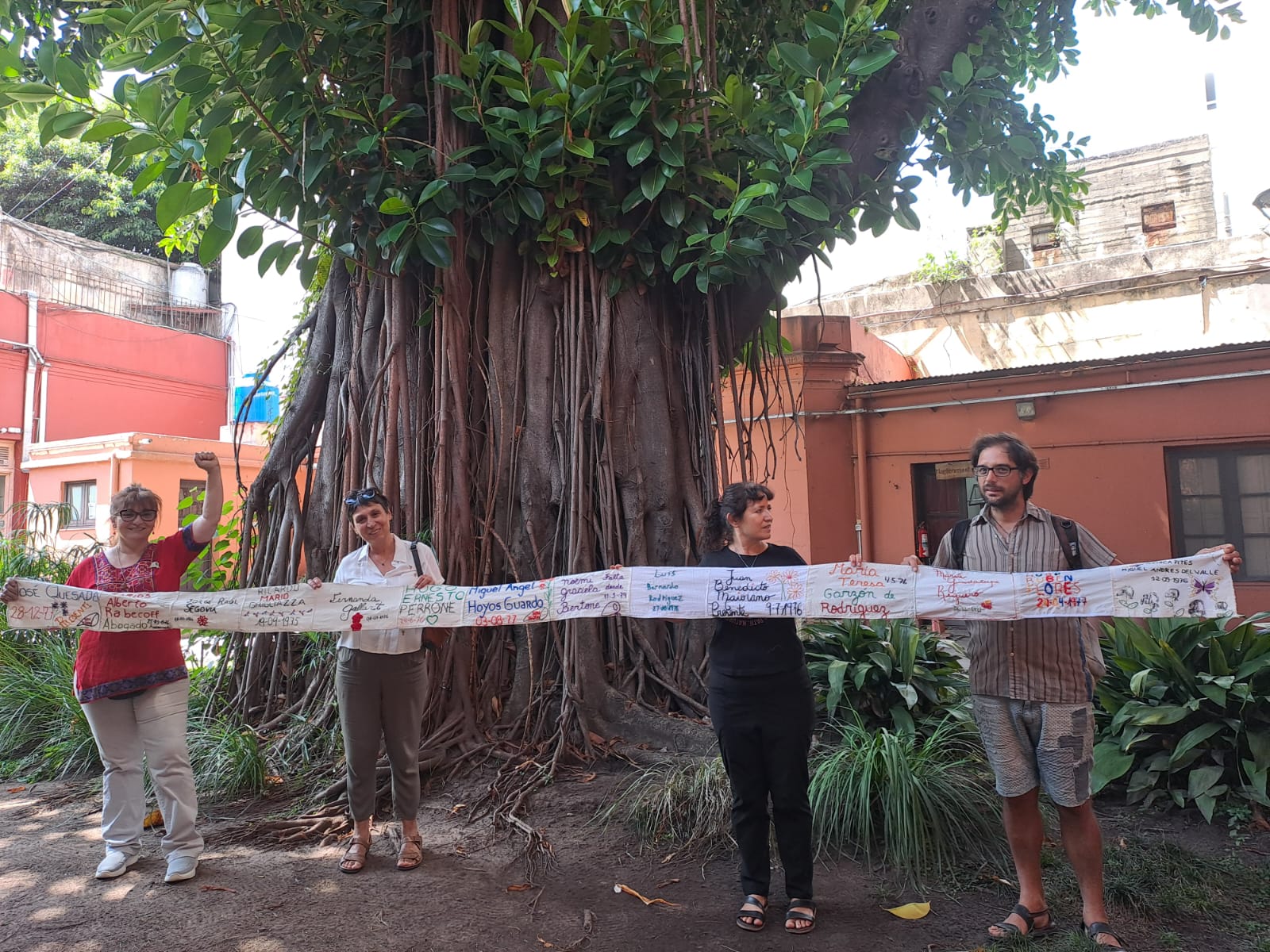 Los bordados de los 14 nombres de personas desaparecidas del distrito de General Rodríguez durante la última dictadura cívico militar, y que precisamente fueran bordados en sucesivas jornadas vespertinas de viernes en la céntrica Plaza Martín Rodríguez por quienes se sumaron a la autoconvocada iniciativa promovida al efecto, fueron ya entregados tal como estaba originalmente previsto, en el Museo Etnográfico Juan Bautista Ambrosetti, dependiente de la Facultad de Filosofía y Letras (FFyL) de la Universidad de Buenos Aires (UBA) la pasada semana, para que se sumen a la conformación de un voluminoso rollo con esos testimonios de efectiva “memoria activa”, ya que pueden considerarse en alrededor de 9000 los nombres con las identidades que simbólicamente acompañarán la marcha de conmemoración del martes 24 de este mes, durante el desarrollo del Día Nacional de la Memoria por la Verdad y la Justicia, en las actividades a llevarse a cabo en la ciudad de Buenos Aires. Luego de esta conmemoración, se integrarán a una muestra organizada en el mismo Museo Etnográfico ubicado en el microcentro porteño, Moreno 350, a dos cuadras de Plaza de Mayo, para luego formar parte de una muestra itinerante que recorrerá seguramente ciudades de distintas provincias de nuestro país. Por otra parte, las 14 identidades de personas desaparecidas de General Rodríguez serán replicadas en nuevos recuadros textiles, y con ese material será confeccionado un tapiz, que podría también cumplir un recorrido itinerante a determinar en suelo rodriguense.